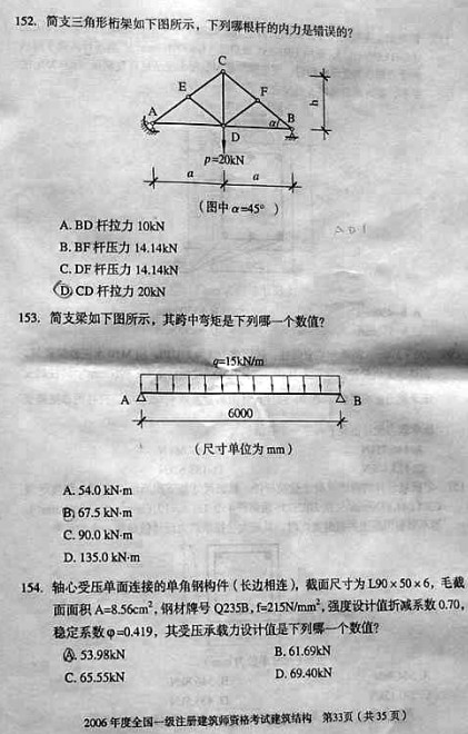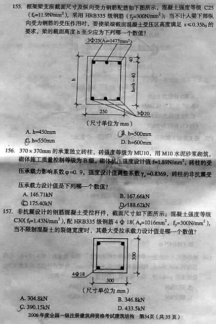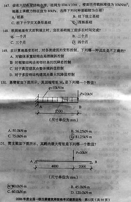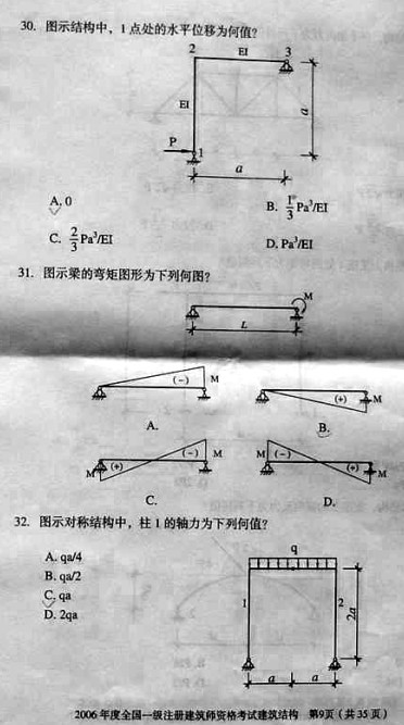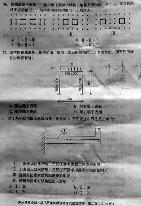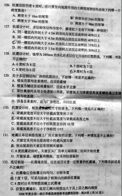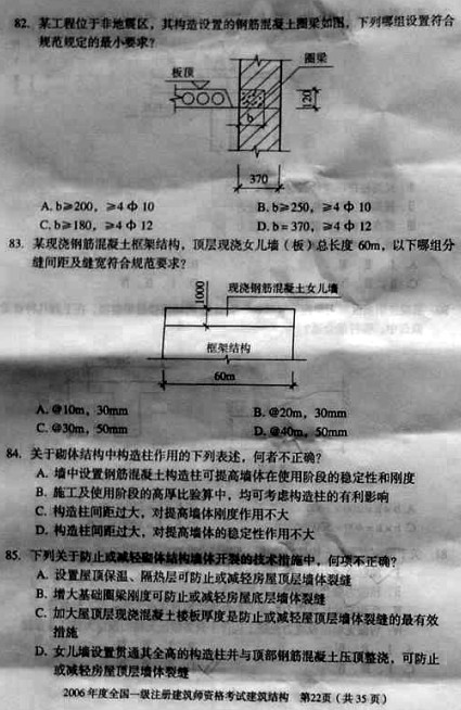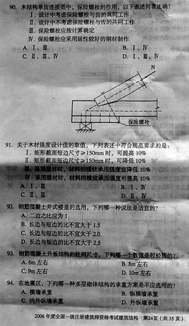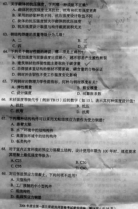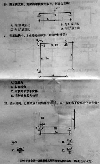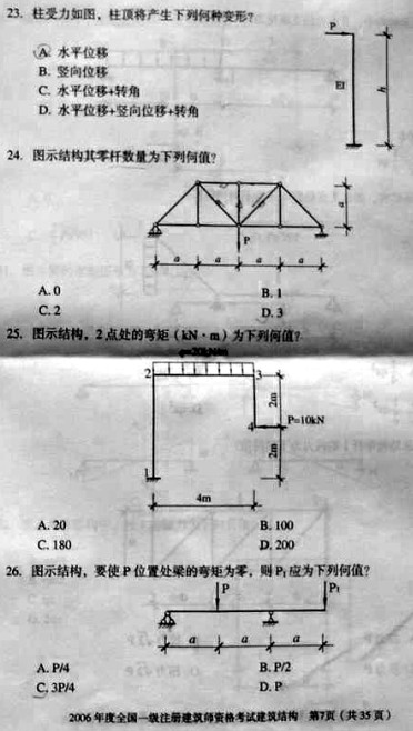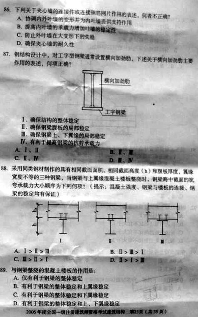 2006年一級建筑師考試《建筑結構》真題