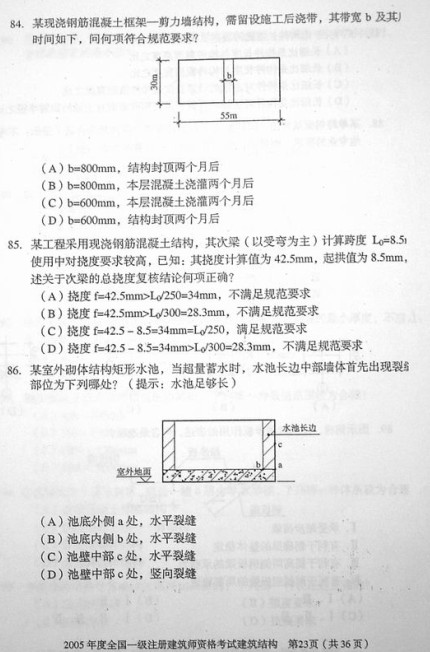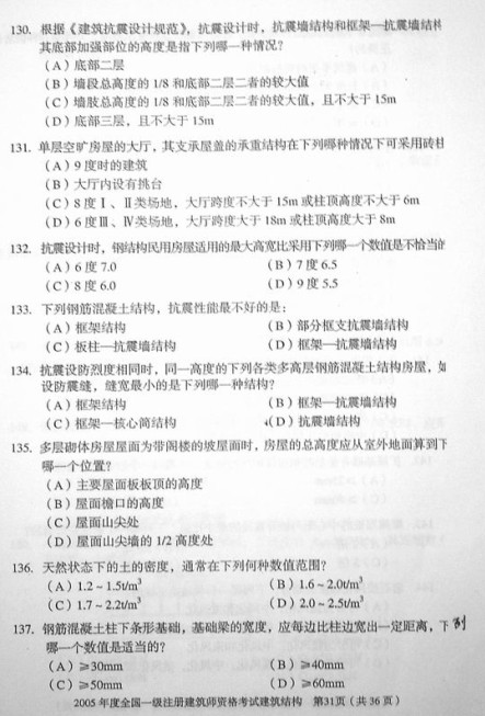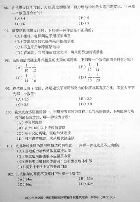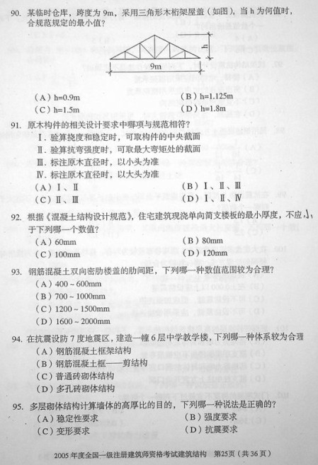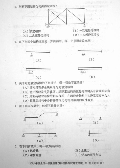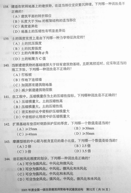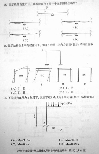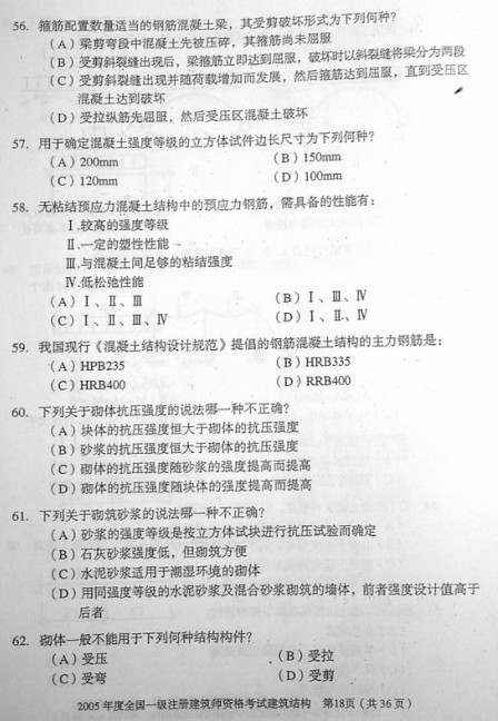 摘要 2005年一級建筑師考試《建筑結構》真題,供廣大考友練習提高。