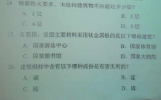 摘要 2008年一級建筑師《建筑材料與構造》真題,供廣大考友練習提高。