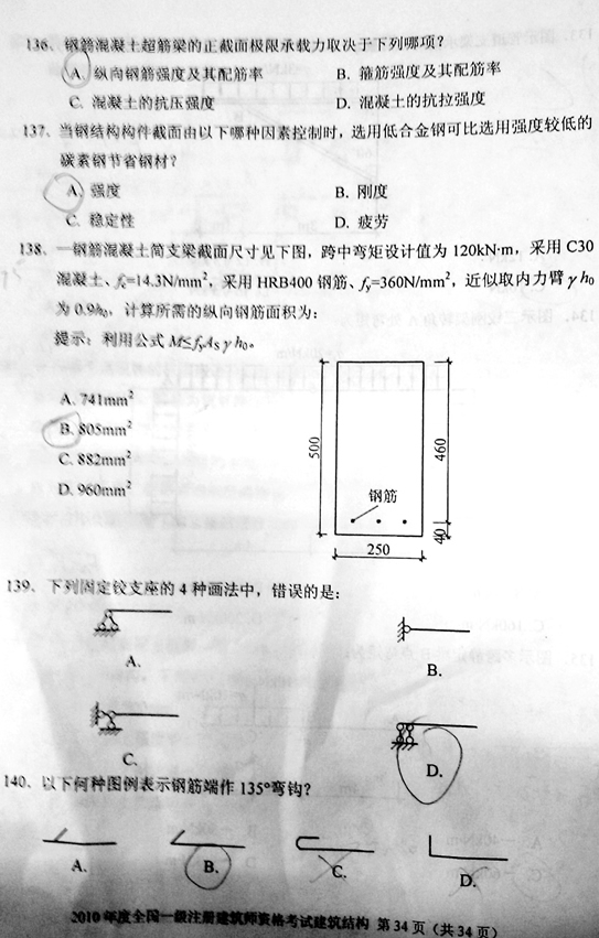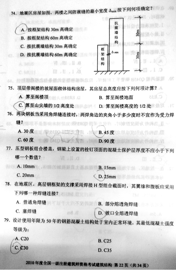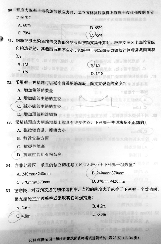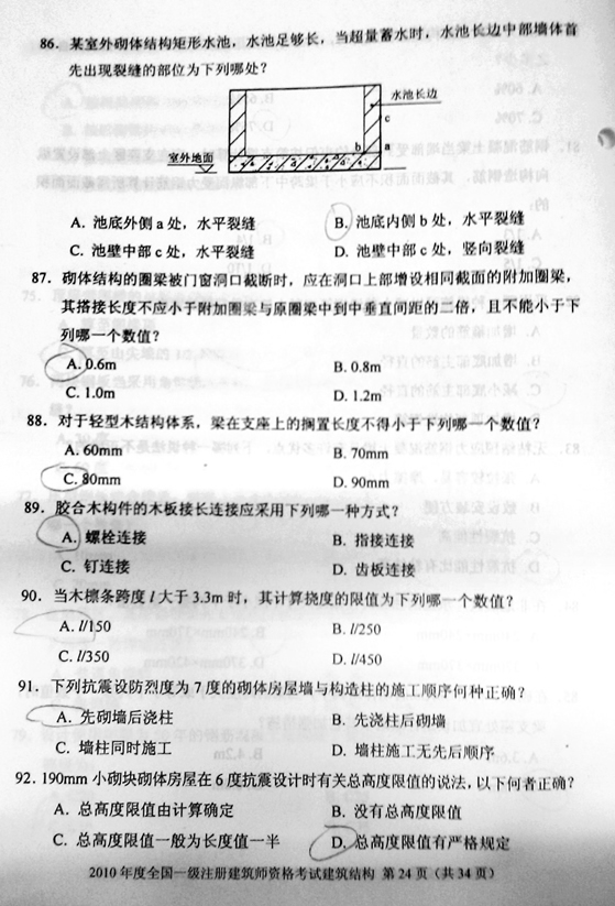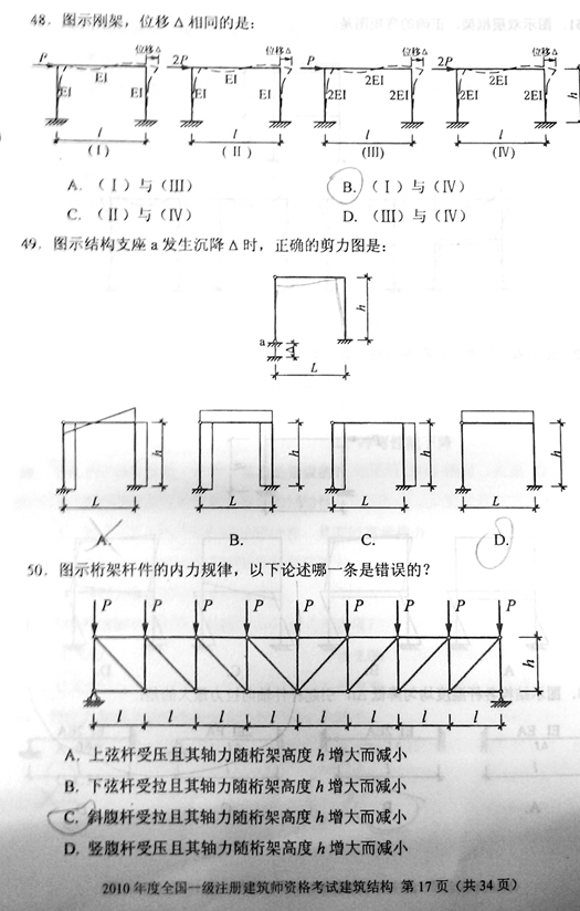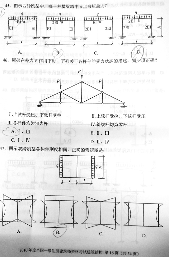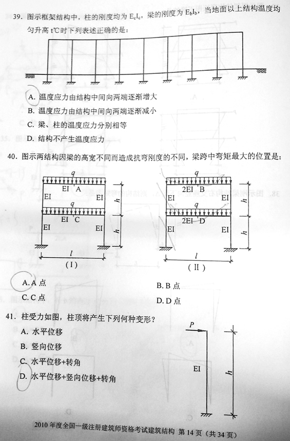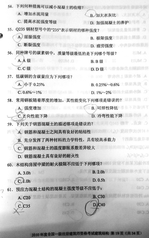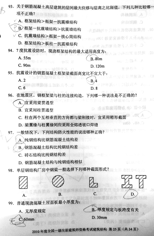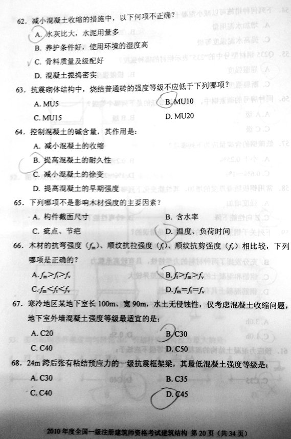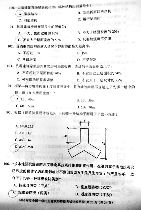 2010年一級建筑師考試《建筑結(jié)構(gòu)》真題