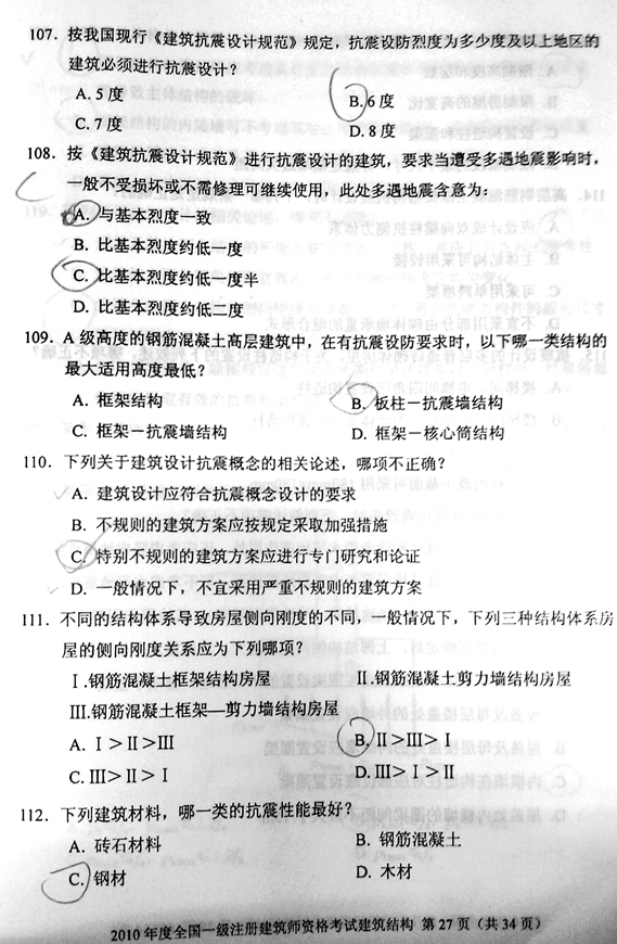 摘要 2010年一級注冊建筑師考試《建筑結(jié)構(gòu)》真題,供廣大考友練習提高。