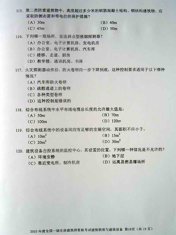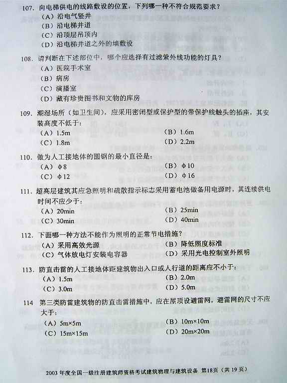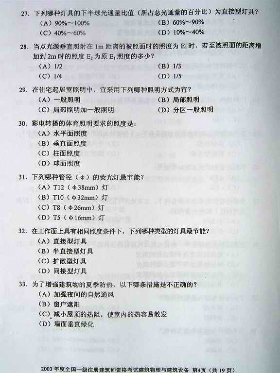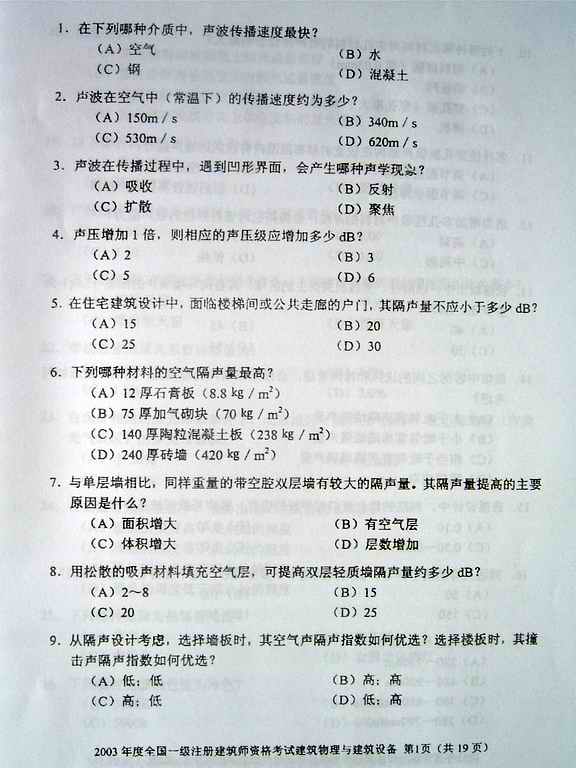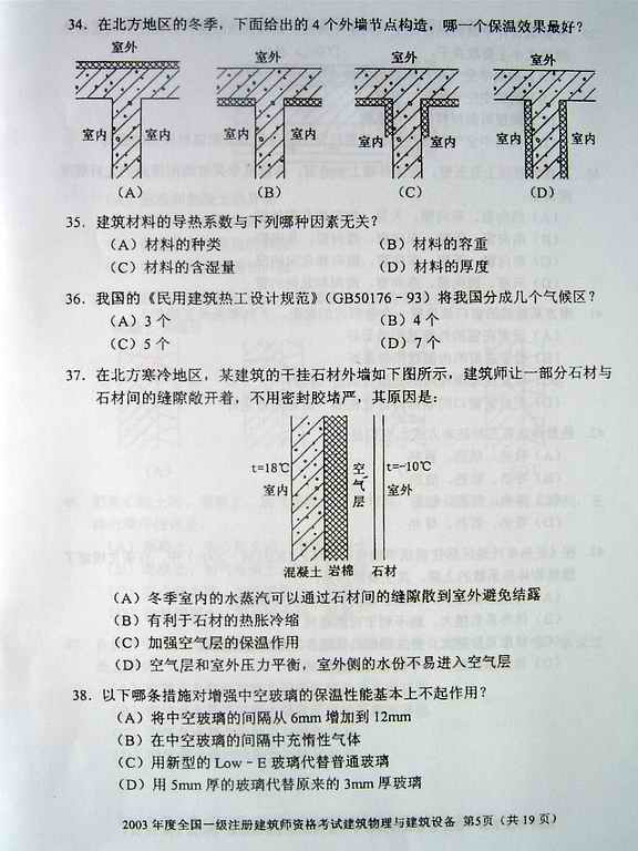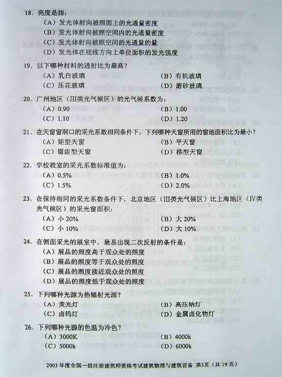 2003年一級(jí)建筑師考試《建筑物理與設(shè)備》真題