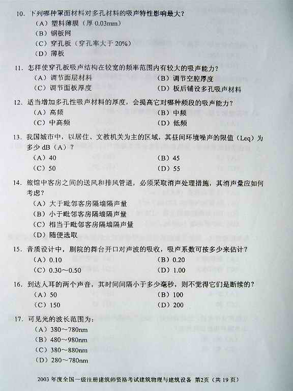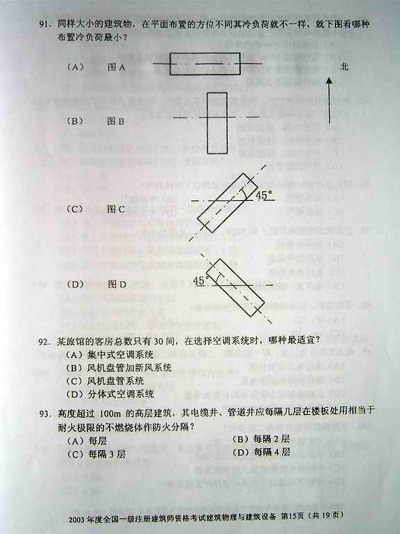 摘要 2003年一級(jí)建筑師考試《建筑物理與設(shè)備》真題,供廣大考友練習(xí)提高。