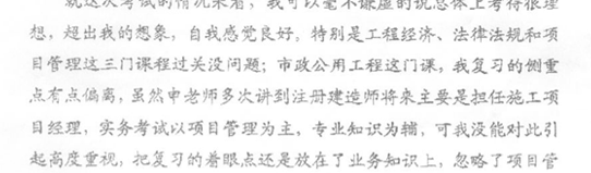 比如在職考論壇中,有學員認為應該提高建造師考試的合格分數線,以提高建造師執業證書的含金量,有很多考友表示贊同,說明考生們答題情況很好,希望以提高分數線的方式來限制沒有認真復習的考生們通過考試,當然,這也說明了本次考試的難度是較低的。
