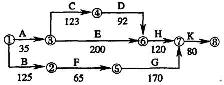 關鍵線路之二①→②→⑤→⑦→⑧→⑨(或A→C→D→H→K)(1分)