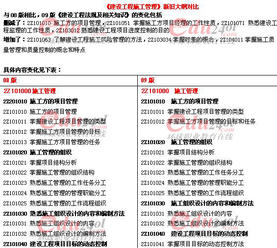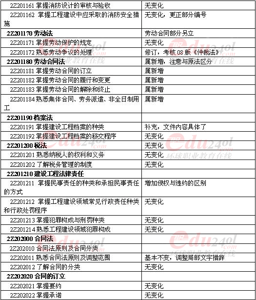 2009年二級建造師大綱新舊對比匯總(上)電子書下載.rar