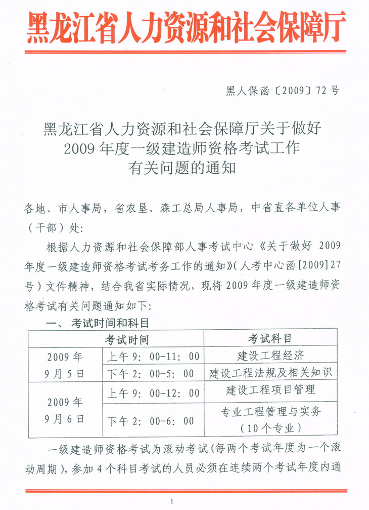 黑龍江2009年一級建造師考試報(bào)名5月25日開始