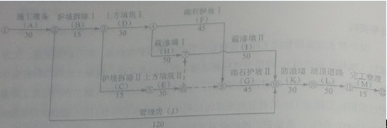 某中型水庫除險加固工程主要建設內容有:砌石護坡拆除、砌石護坡重建、土方填筑(壩體加高培厚)、深層攪拌樁滲墻、壩頂瀝青道路、混凝土防浪墻和管理房等。計劃工期9個月(每月按30天計)。合同約定:①合同中關鍵工作的結算工程量超過原招標工程量15%的部分所造成的延期由發包人承擔責任;②工期提前的獎勵標準為10000元/天,逾期完工違約金為10000元/天。