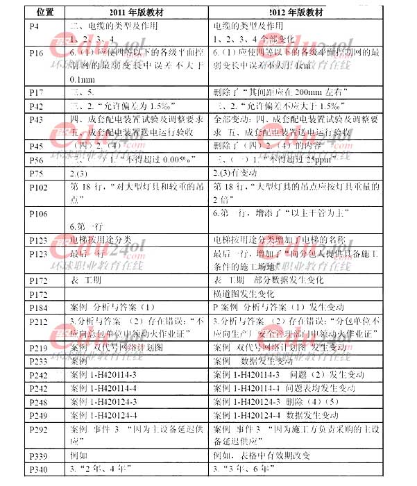 一級建造師機電工程考試新舊教材對比(2011、2012年)