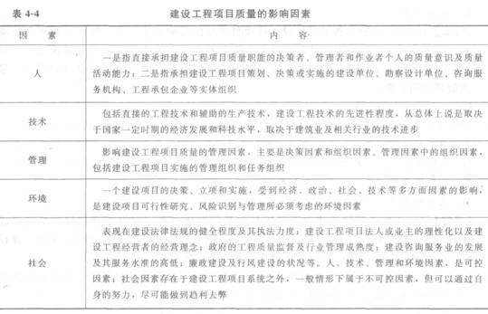 建設工程項目質量的影響因素見表4-4。
