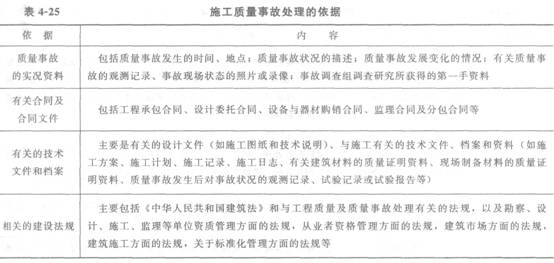 施工質(zhì)量事故處理的依據(jù)見(jiàn)表4―25。