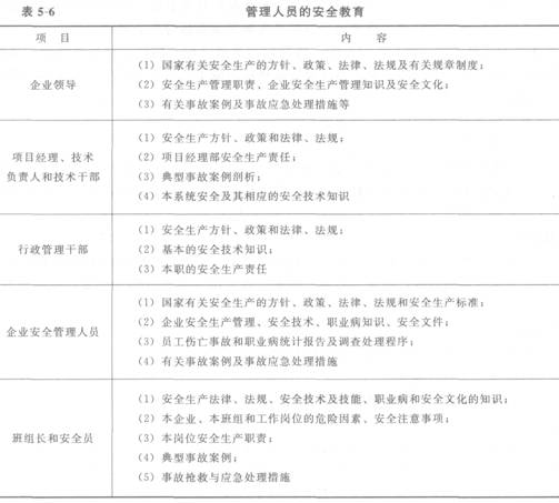 管理人員的安全教育見表5-6。