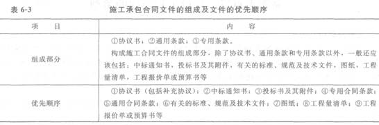 施工承包合同文件的組成及文件的優先順序見表6-3。