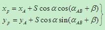 β ―― 未知邊AP與已知邊AB的水平夾角,當未知邊AP在已知邊AB的右側時,取“―β”。