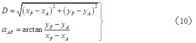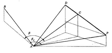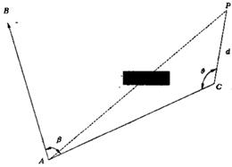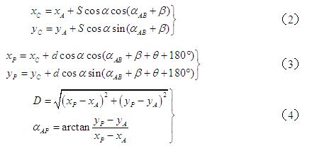 β ―― 邊AC與已知邊AB的水平夾角,當β和θ為右角時,式(4)取“-β”和“-θ”。
