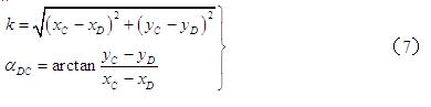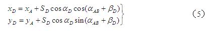 式中 βC、βD ―― 邊AC和AD與已知邊AB的水平夾角,當未知邊AC和AD在已知邊AB的右側時,式中取“-βC”和“-βD”。