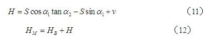 根據圖形的幾何關系可以推出M點到地面的高度H和M的高程HM: