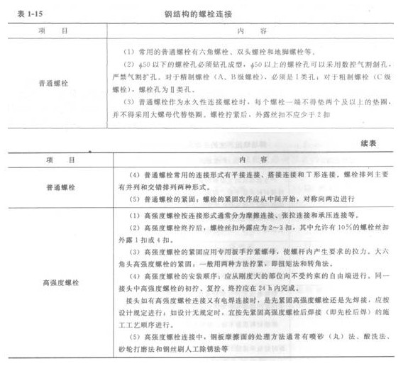 鋼結(jié)構(gòu)的螺栓連接,見(jiàn)表1―15。
