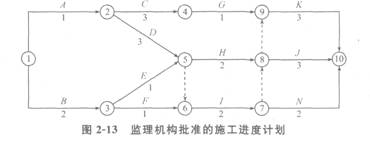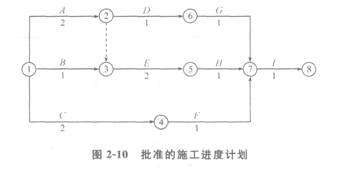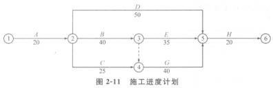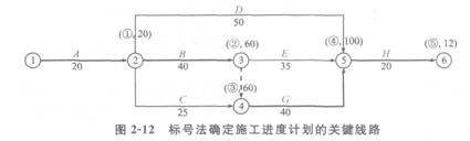 如圖2―12所示,粗實線表示關(guān)鍵線路;經(jīng)分析可知,E工作有5d總時差。。