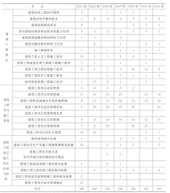 摘要 2004-2011年一建考點(diǎn)分值分布