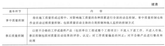 施工階段質量控制目標;共同性依據;專門技術法規性依據;事前質量控制;事中質量控制;事后質量控制。