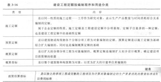 建設工程定額按編制程序和用途分類見表3―16。