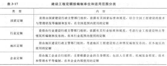 建設工程定額按編制單位和適用范圍分類見表3―17。