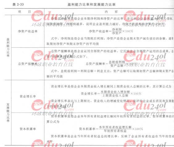 (1)本命題考點的第一類型考題就是分析反映企業盈利能力、營運能力、償債能力與發展能力的指標各包括哪些。