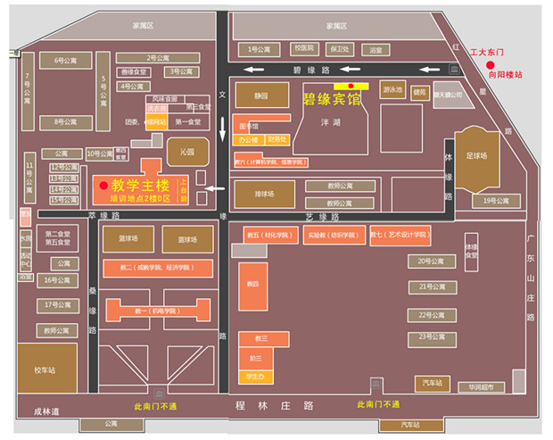 請從紅星路工大東門(向陽樓對面)進入工大,成林道工大南門封閉。