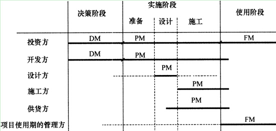 (3)使用階段的管理,即設(shè)施管理FM―Facility Management(如圖1Z201011―1所示)。