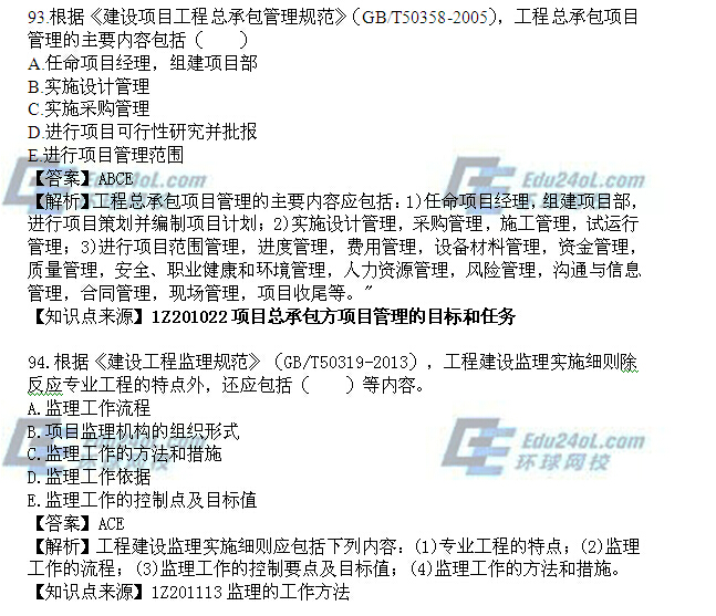 2014年一級建造師《項目管理》真題解析(91-100)