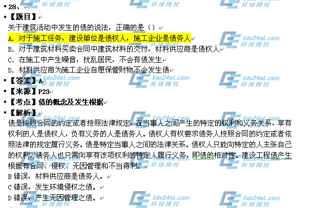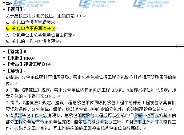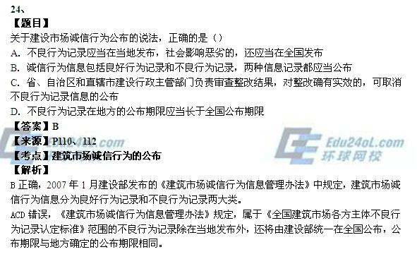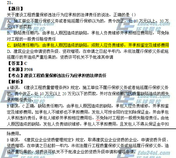 【摘要】一級建造師考試剛剛結束,各位考生一定非常關注本次考試的試題和參考答案等信息,環球網校一級建造師考試頻道為方便各位考生估分,特地為大家及時整理了本次一級建造師考試的真題,并附解析與參考答案,本文為2014年一級建造師《工程法規》真題解析(21-30),希望能夠對各位一級建造師考生有所幫助。更多復習報考資料及試題敬請關注環球網校一級建造師考試頻道,您可以按【ctrl鍵+D】手動收藏此頁面。