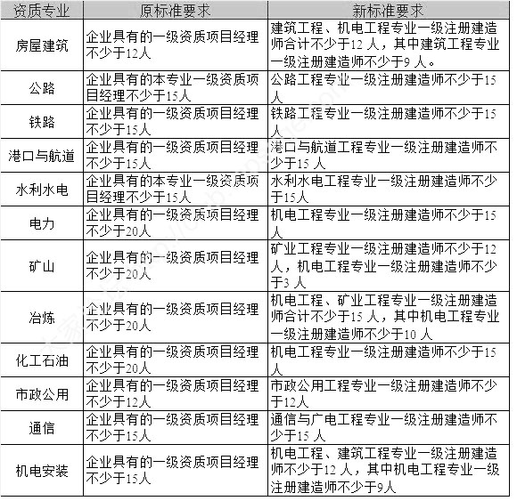 建筑業(yè)企業(yè)資質(zhì)標(biāo)準(zhǔn)解讀:建造師新舊數(shù)量要求對比