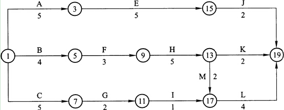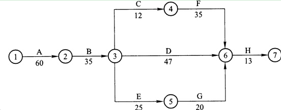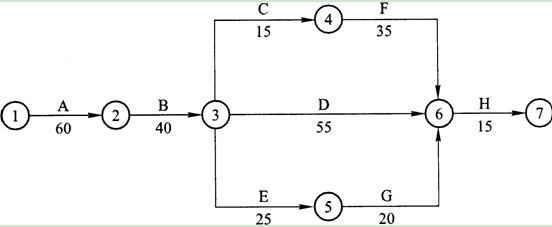 其關鍵線路(關鍵工作法表示)為:A→B→D→H和A→B→C→F―H 。