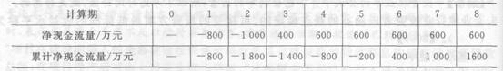 【解析】Pt=(累計凈現金流量出現正值的年份-1)十(上一年累計凈現金流量的絕對值/當年凈現金流量)=6-1+200/600=5.33(年)。