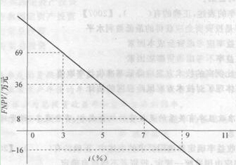 (豫R一5%)/(9%一5%)一36/(36+16),由此,IRR=7.7%。FNPV也用插值法計算,(7.7%-6%)/(9%-6%)=FNPV(FNPV+16),由此,FNPV=21萬元。