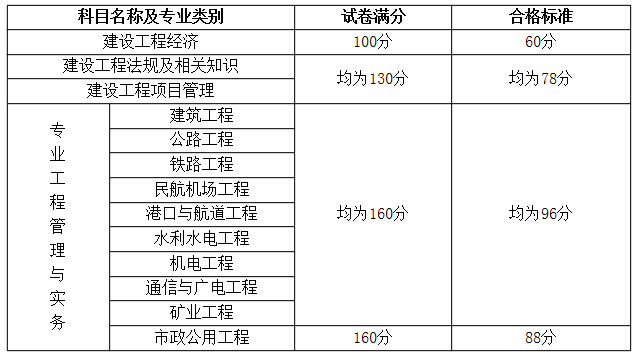 2014年度一級建造師資格考試合格標準
