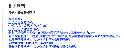 溫馨提示:江蘇2014年一級建造師合格標準已發(fā)布,請進入成績查詢頁面查看: