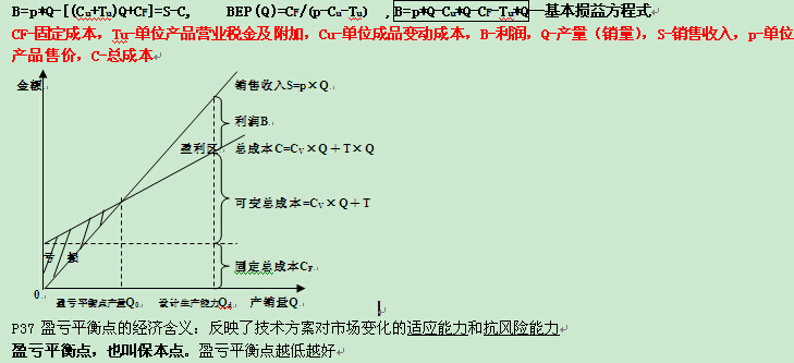 P37盈虧平衡性分析-缺點:不能揭示產生技術方案風險的根源(看不出什么因素影響的大) (主要還是考察計算題,書本上36-37例題多看看)