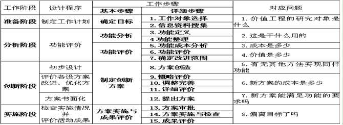 注意:價值工程分析階段,功能分析(3功能定義、4功能整理);功能評價(5功能成本分析、6功能評價、7確定改進范圍)。