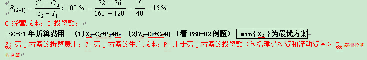 增量投資分析法公式:(P79例題。R>基準投資收益率=可行,反之不可行)