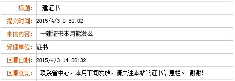 摘要 聯系省中心,本月下旬(即4月下旬)發放,請關注環球網校證書信息欄。