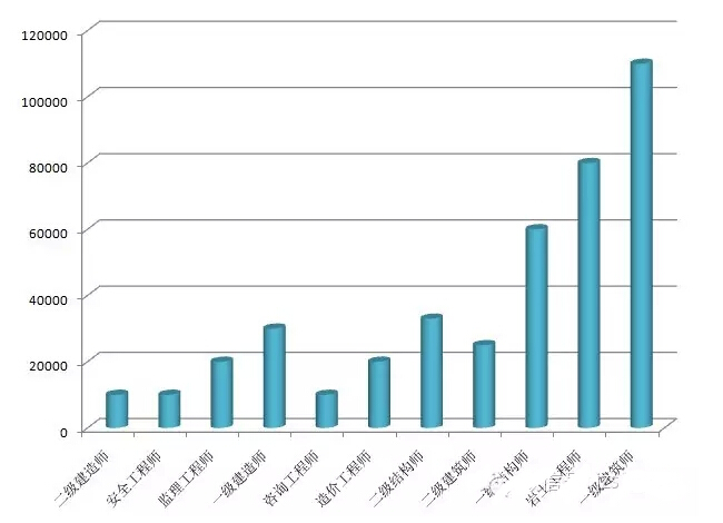 一級注冊建筑師 (20萬-22萬)/兩年 一級注冊結構工程師 (18萬-20萬)/三年