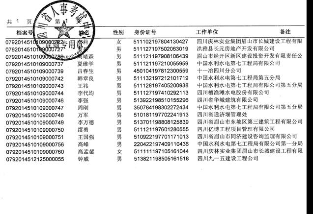 附件:2014年度四川省一級(jí)建造師執(zhí)業(yè)資格考試眉山地區(qū)合格人員名單