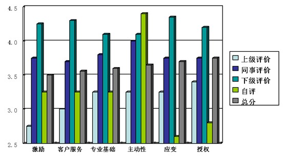 某公司客戶部經理的360度反饋評價結果如下圖所示,該部門經理的直接主管正準備根據這個結果對其進行績效面談。
