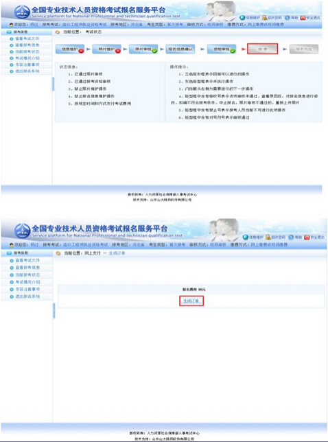 界面左側顯示狀態信息,右側顯示操作提示,請報考人員參考上述信息進行相關操作,直到報名完成。