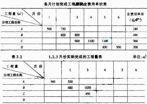 (4)分項工程累計實際完成工程量超出計劃完成工程量的20%時,該分項工程工程量超出部分的結算單價調整系數為0.95.各月計劃完成工程量及全費用單價如表3.1所示。