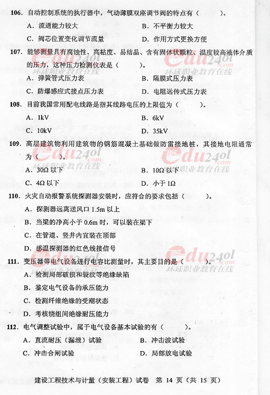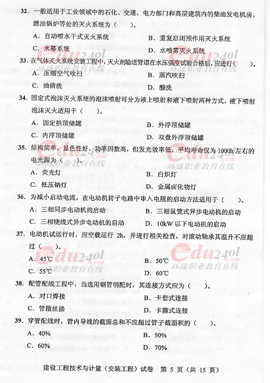 - 2025年一級造價師《安裝計量》真題答案41-50題2025-10-23