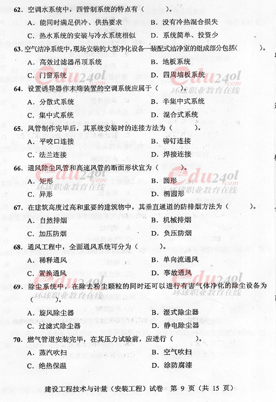 - 2025年一級造價師《安裝計量》真題答案61-70題2025-10-23