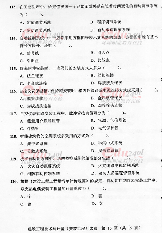 2007年造價工程師《建設工程技術與計量(安裝)》真題